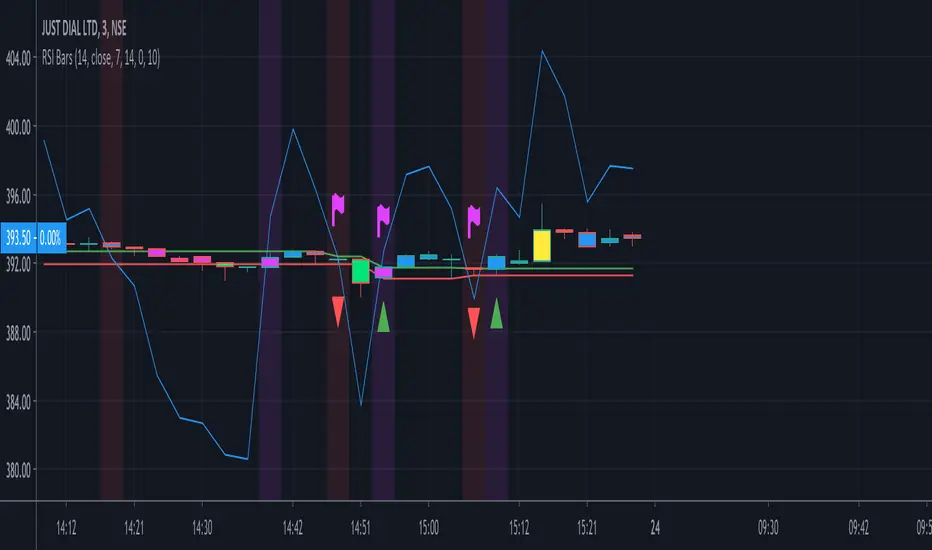 3. If RSI Sub is above 0 - the direction of trade is Long (flag Green), if its below 0 - the direction of trade is short (flag red)
