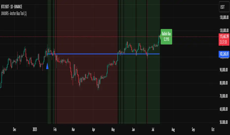 The Anchor Bias Tool is a precision-based market structure tool designed to help traders visually quantify bias from any significant market event. Rather than relying on subjective trendlines or reactive signals, this tool lets you define a specific candle. Typically tied to a news event, breakout, or key swing point and then monitor how price behaves from that point forward.