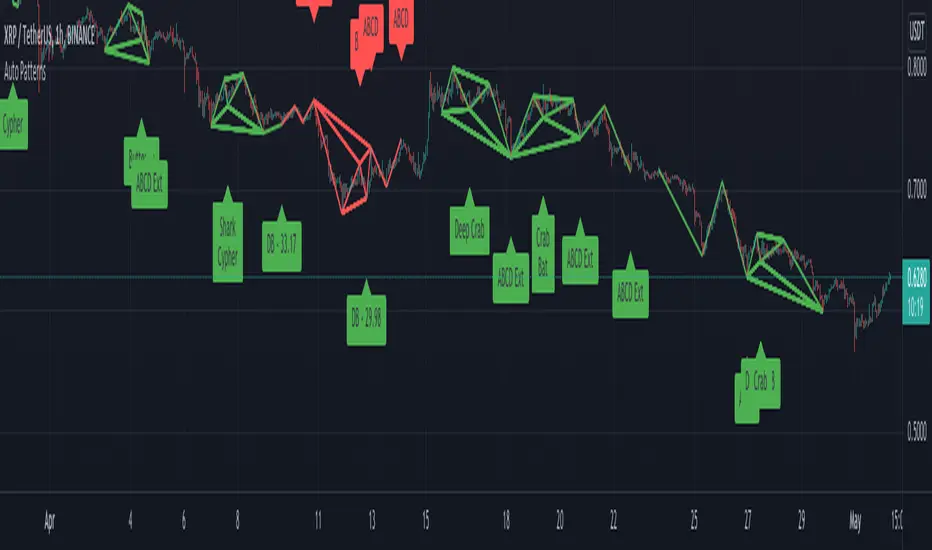This is my first attempt on plotting harmonic patterns based on zigzag. Initial version is still primitive and might need lot of time to mature into more formidable one. Will try to explain entire logic in the description. Please feel free to correct me if my understanding of any pattern and underlying logic is incorrect.