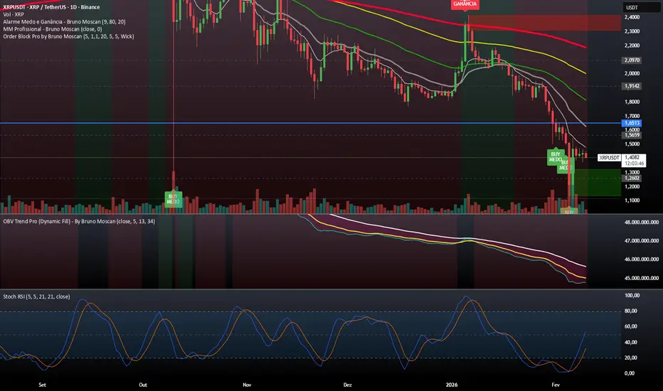 "Alarme Medo e Ganância - Bruno Moscan", is designed to identify extreme market sentiment (Fear and Greed) by using the Relative Strength Index (RSI) as a proxy for price exhaustion.