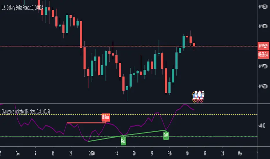 Firstly, be sure that you have done your research on what divergence is. The oscillator will automatically mark all types of divergence and has coloured 'over bought' and 'oversold' levels at 30 and 70, although reliable, be sure to use other Technical Analysis before entering trades.
