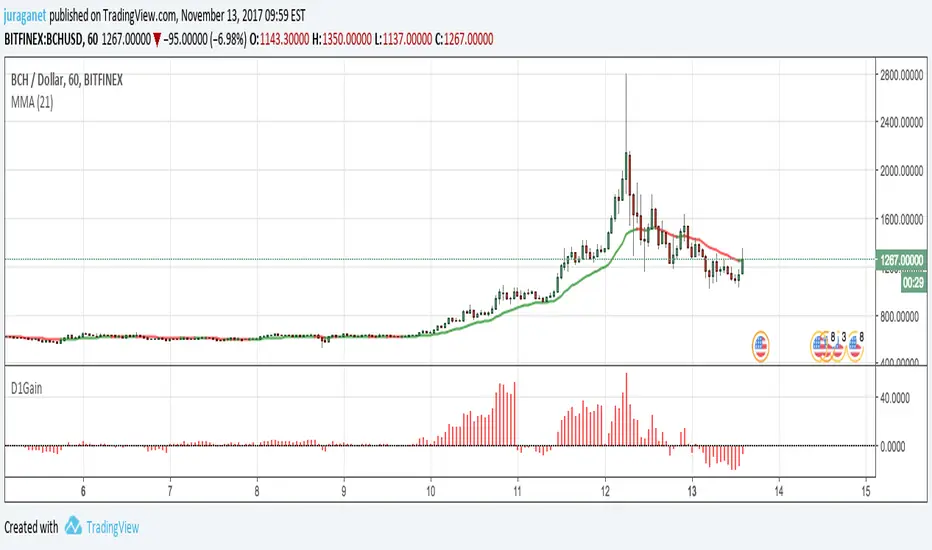 Plot today's gain (%) of current security. It's a value of increase/decrease of current price compared to today's 00:00:00 candle open price.