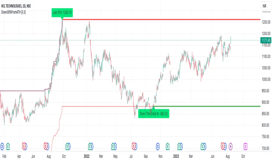 This indicator tracks the latest ATH of any stock and tracks when the price is down by 30% from the ATH value.
