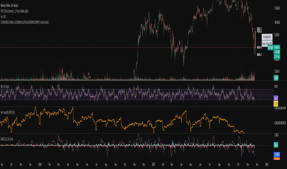 ​⚠️ DIVERGENCE WARNING: A strong signal is generated when Price (e.g., BTC) rises, but Net Liquidity falls. This macro divergence strongly suggests a major trend reversal or correction is imminent.