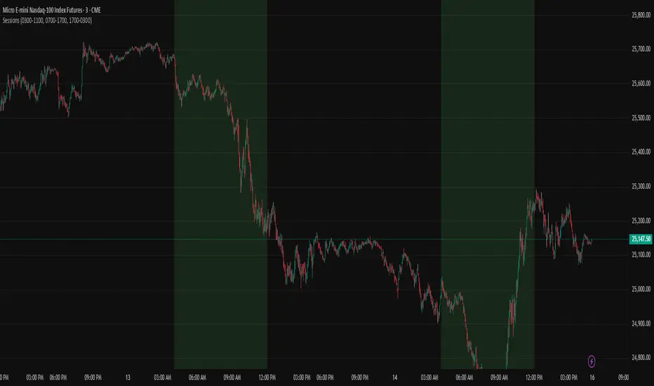 This tool highlights the London, New York, and Asia sessions on your chart. You can change the session times to whatever you want, making it easy to see which session the market is in.