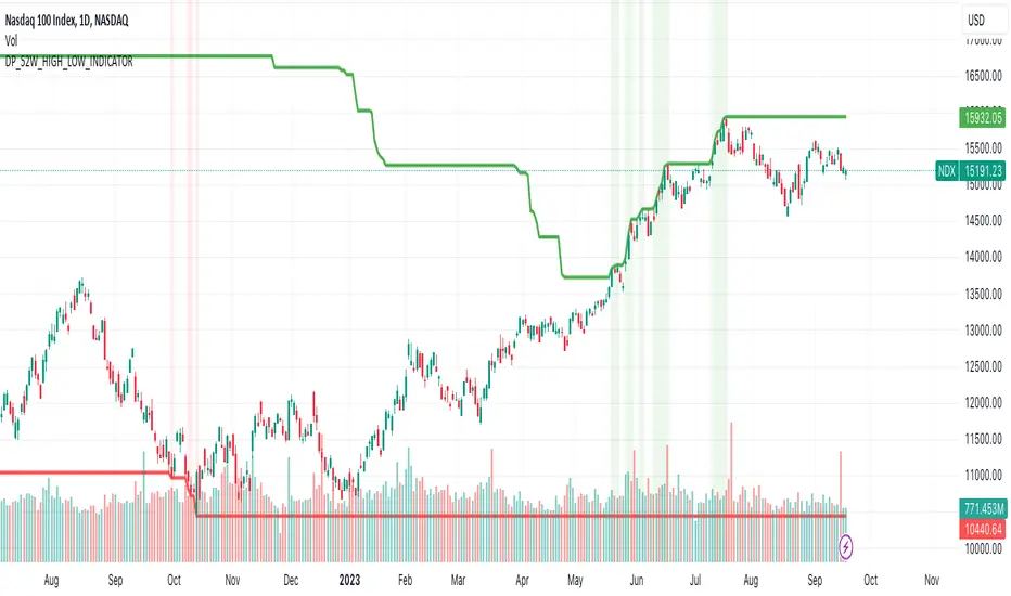 This indicator tracks the 52W High and Low of any script and provides a visual interpretation of the stock price movement.