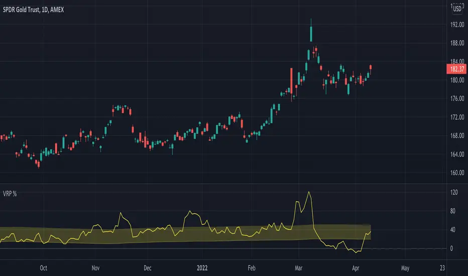 This indicator (V-R-P) calculates the (one month) Volatility Risk Premium for GOLD and SILVER.