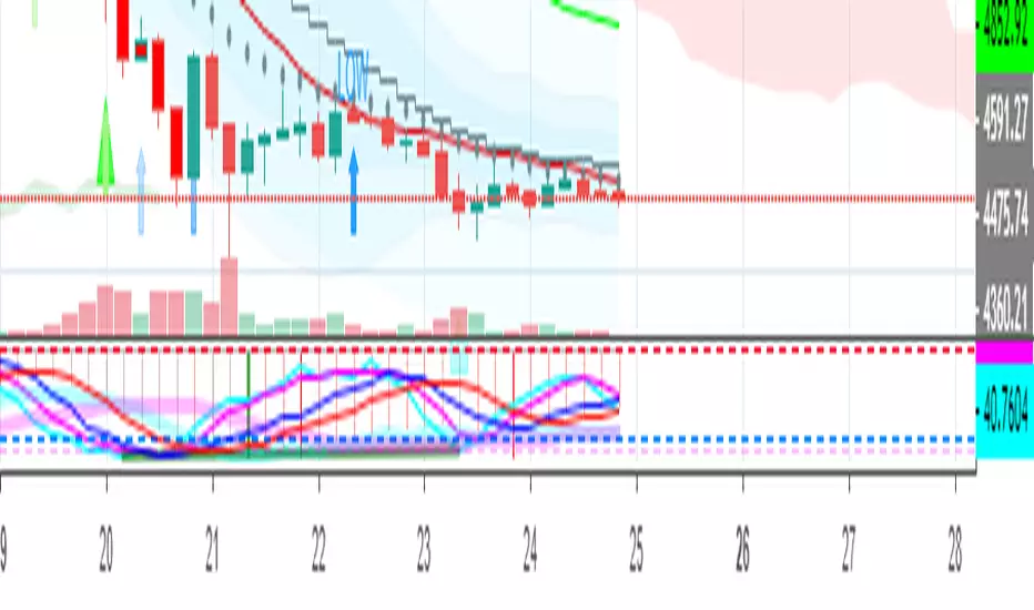 SMA + EMA + SMMA + Ichimoku Cloud + Bollinger Band(1,2) + Fibonacci Band + RSI + Stochatstic(1,2,3) = SIGNAL