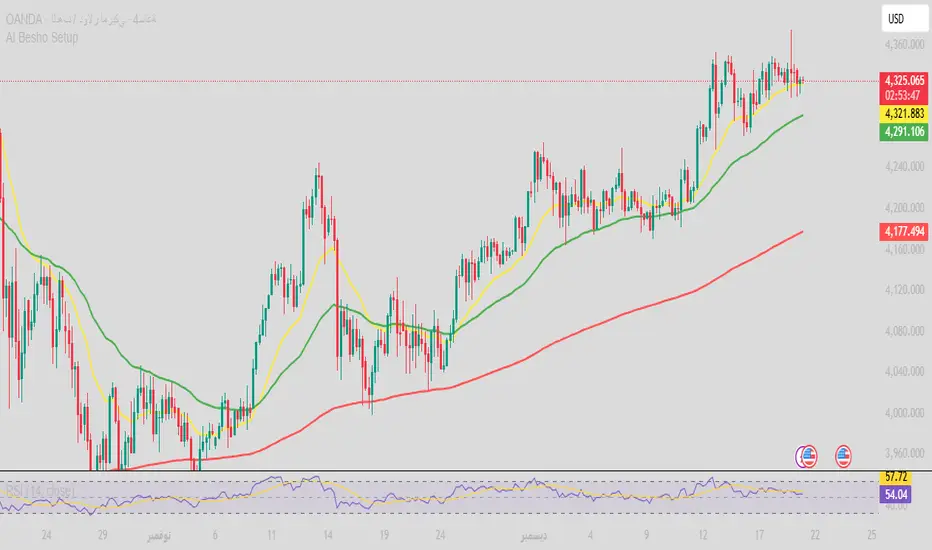 The Moving Averages (The Colored Lines) These three lines are the backbone of this system. They are perfectly aligned for a bullish trend (Yellow > Green > Red) and act as protective shields for the price: