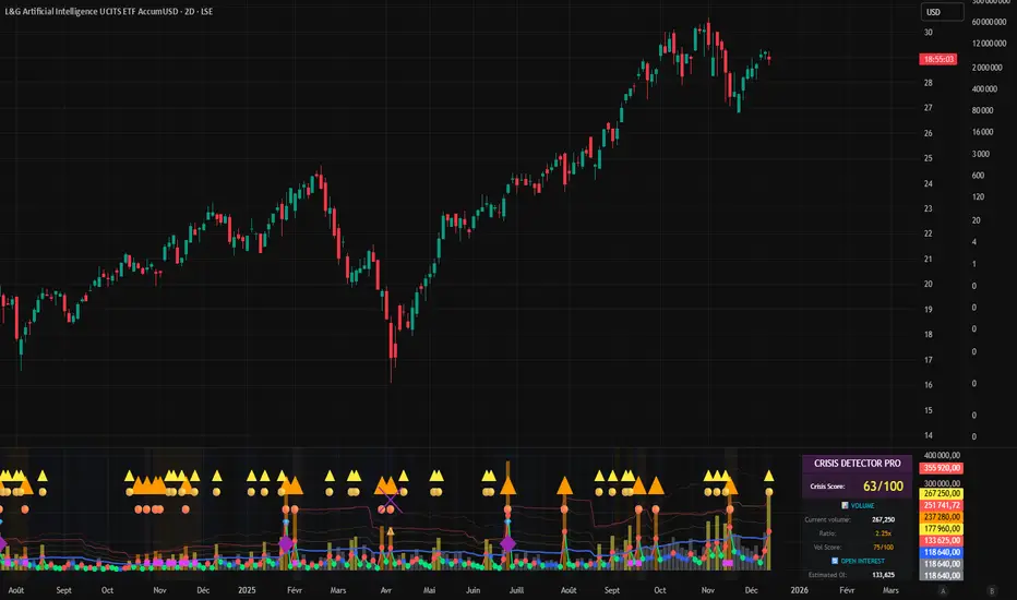 The indicator calculates a Composite Crisis Score (0-100) that combines these elements to alert you to critical market moments.