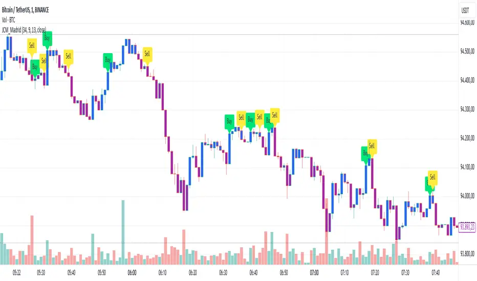 This indicator provides dynamic bar coloring and buy/sell signals based on EMA relationships and price momentum. It allows traders to visually identify trend changes and potential trade opportunities directly on the chart.