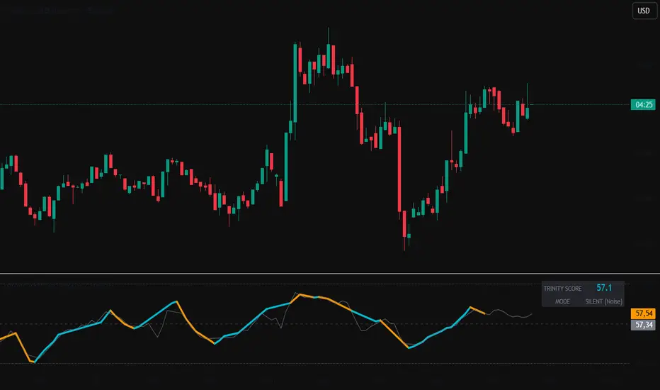 The Mizan Trinity Oscillator (MTO) is designed to synthesize these three forces into a single, highly responsive frequency line. It acts as the "Engine Gauge" for your chart, telling you if the trend has fuel or if it's running on fumes.