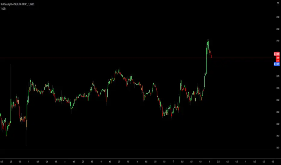 When the series of lows or highs is broken, indicating a reversal in the trend, the candles change color. This provides a fresh perspective when monitoring the trend.