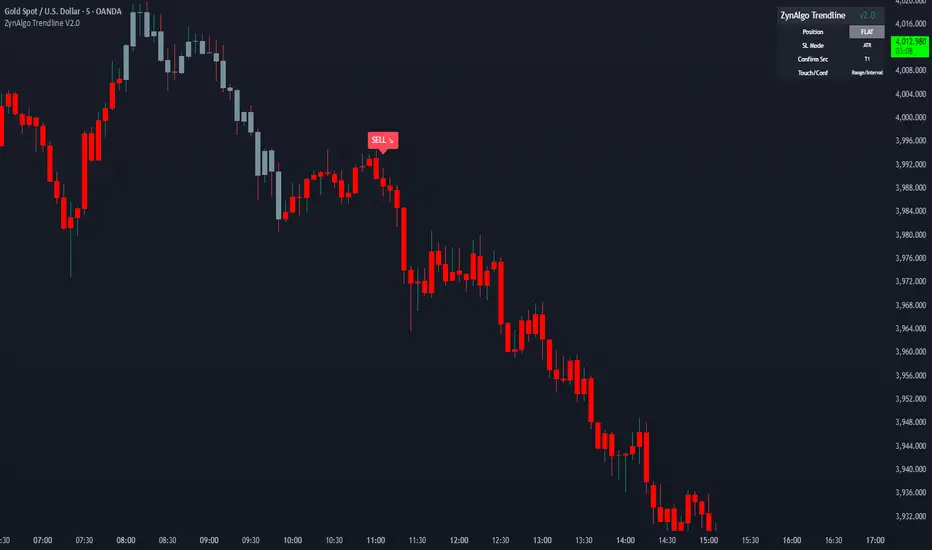 ZynAlgo Trendline V2.0 is a trend-following indicator designed to help traders visually identify market direction, momentum alignment, and dynamic risk zones.