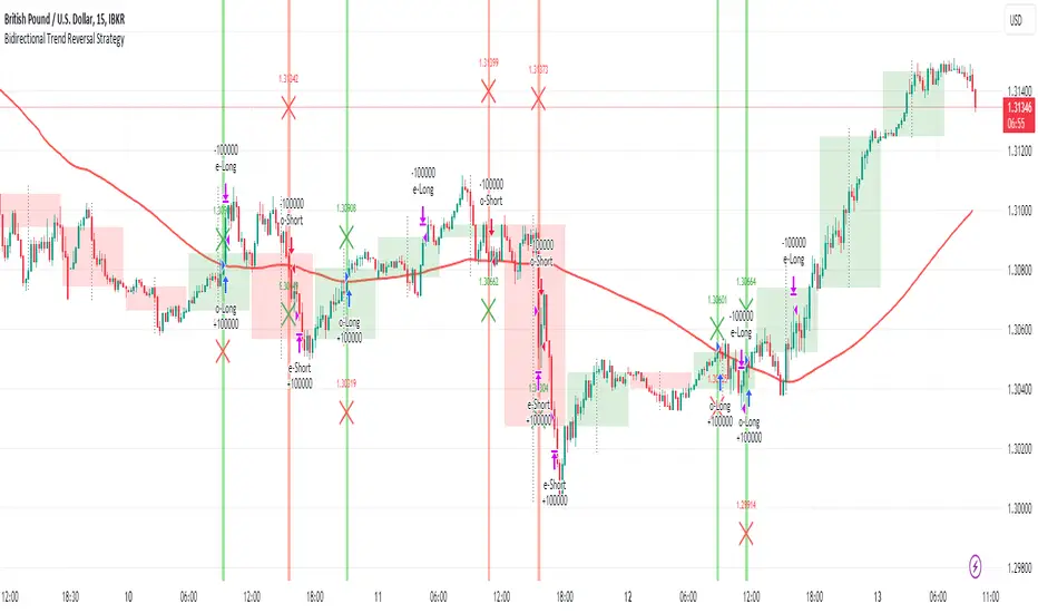 This strategy aims to identify potential trend reversals and execute trades accordingly, focusing on both long and short positions. It uses a crossover of the Simple Moving Average (SMA) with price action as a key signal. When the price crosses above the SMA and the previous period was bearish (closed lower than it opened), the script opens a long position ("o-Long"). The exit ("e-Long") occurs when the target or stop-loss levels are hit, which are dynamically set using the ATR (Average True Range).