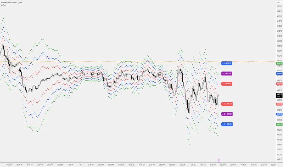 On request: MTF capability. Higher and Lower Timeframe standard deviations.