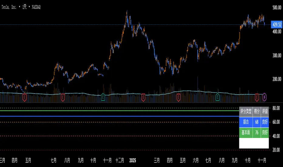 综合评分 Overall Score 基本面和技术面的加权平均分