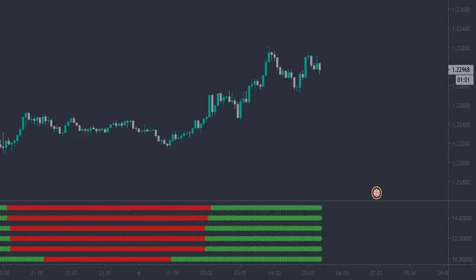 This indicator shows whether the pair is in a fib long or short on 6 different timeframes which gives you an overall direction of price.