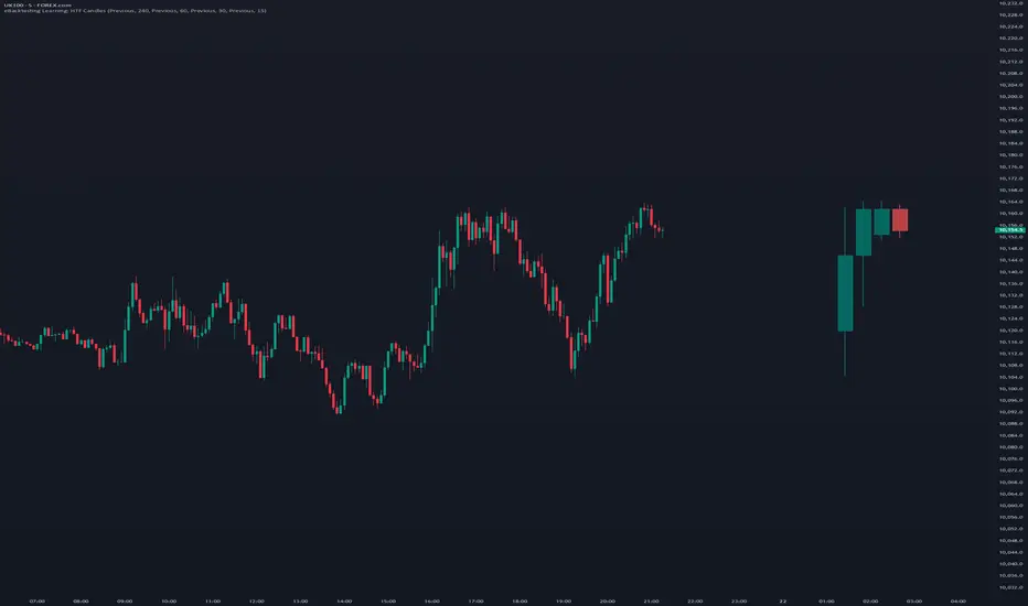 eBacktesting - Learning: HTF Candles brings higher-timeframe candles directly onto your current chart, so you can keep your bigger-picture context while executing on the lower timeframe.