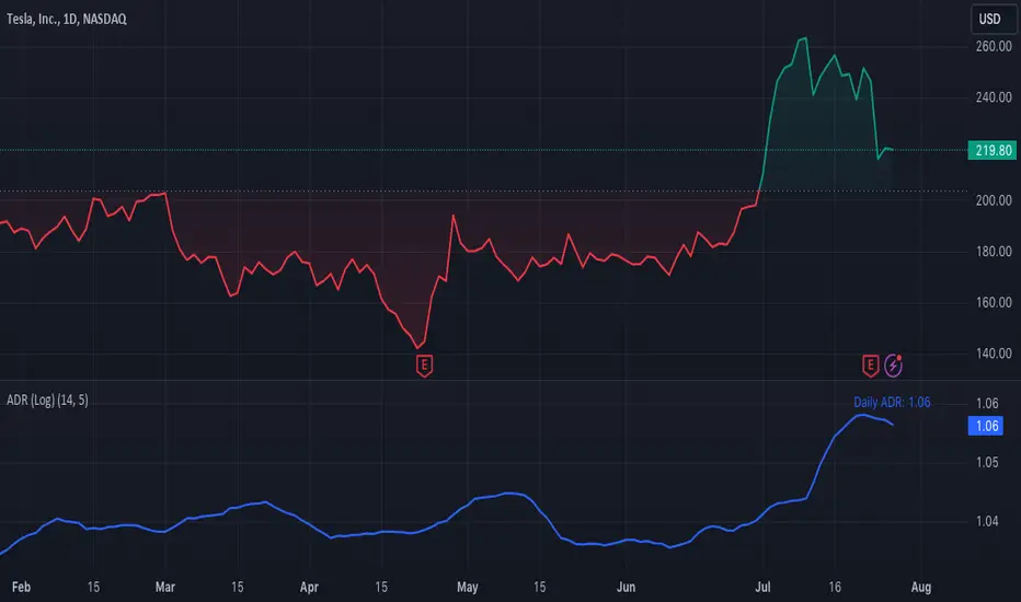 1. Logarithmic Scale: Unlike the classic ADR, which uses a linear scale, this version uses a logarithmic scale for calculations. This approach provides a more accurate representation of relative price movements, especially for assets with large price ranges.