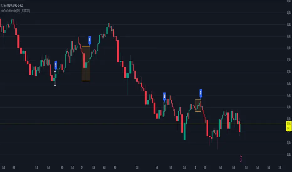 Session Trend Predictor highlights specific trading sessions (like the New York session or any custom intraday range) directly on the chart, helping traders visually analyze price behavior within those time windows. It draws color-coded boxes around each session and assigns a simple trend signal (📈 or 📉) at the end of the session based on how price behaved during that time.