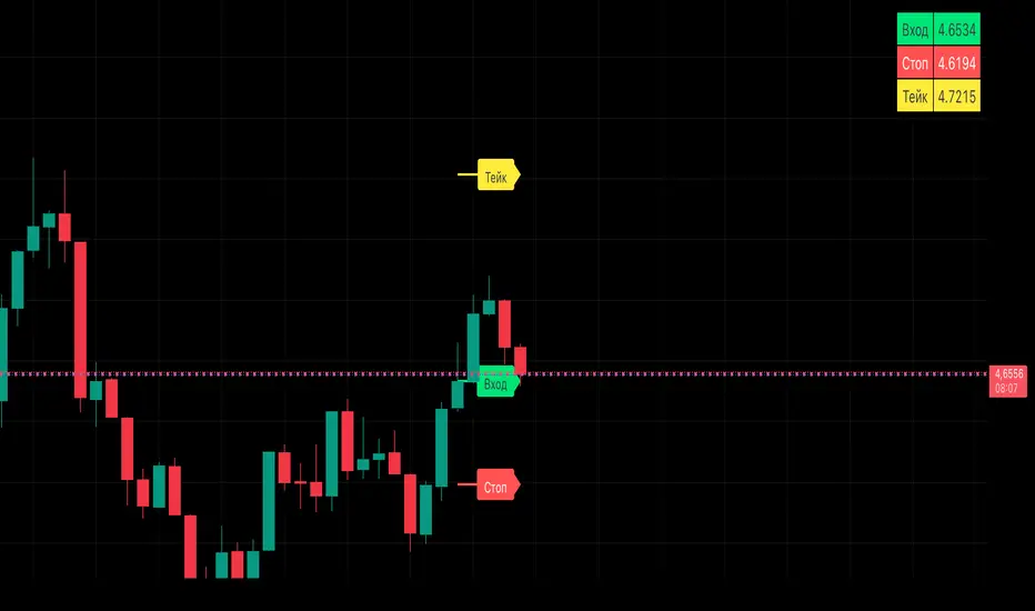 This indicator plots Entry, Stop-Loss and Take-Profit levels after a signal.