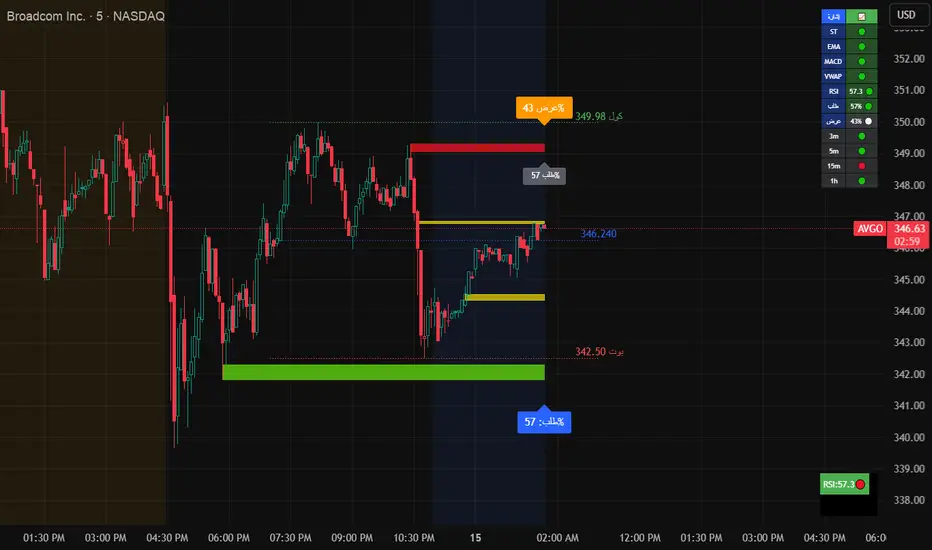 هذا المؤشر متقدم ويعرض اتجاه السوق والترند بشكل واضح، ويحدد مناطق العرض والطلب (Supply & Demand) بالإضافة إلى فجوات القيمة العادلة (FVG). يوفر إشارات شراء وبيع (Call و Put) عند كسر أو اختراق المستويات الهامة. كما يحدد أهدافًا ومستويات دعم ومقاومة رئيسية. المؤشر مناسب لجميع المتداولين الراغبين في تحليل السوق بدقة واتخاذ قرارات تداول مستنيرة.