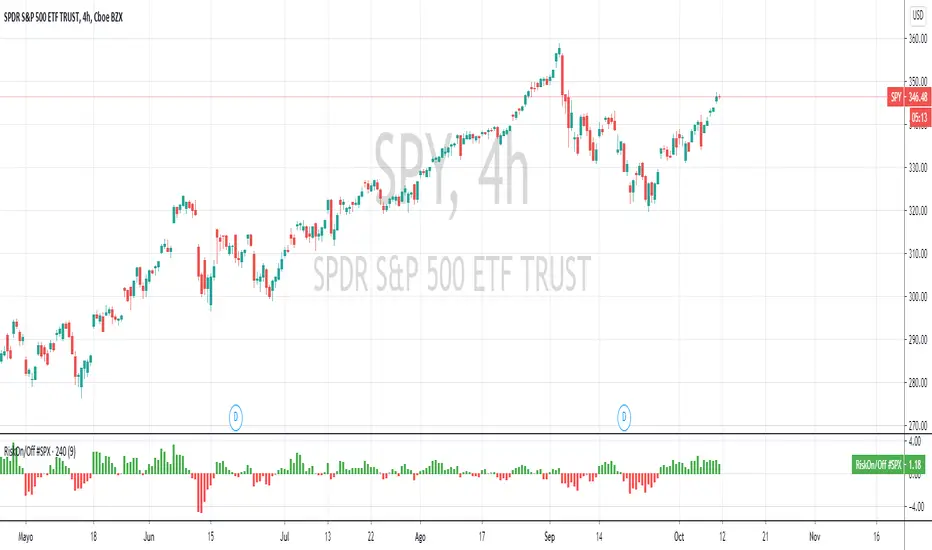 Riskon mode refers to a generalized perception of low risk in financial markets. Riskoff mode is the exact opposite. In this case, the perception of risk is high and drives investors away. In a riskon scenario, the market trend will continue to rise and, conversely, in riskoff mode, significant falls in the market can be expected. This indicator assesses the RiskOnRiskOff sentiment for # SPX500.