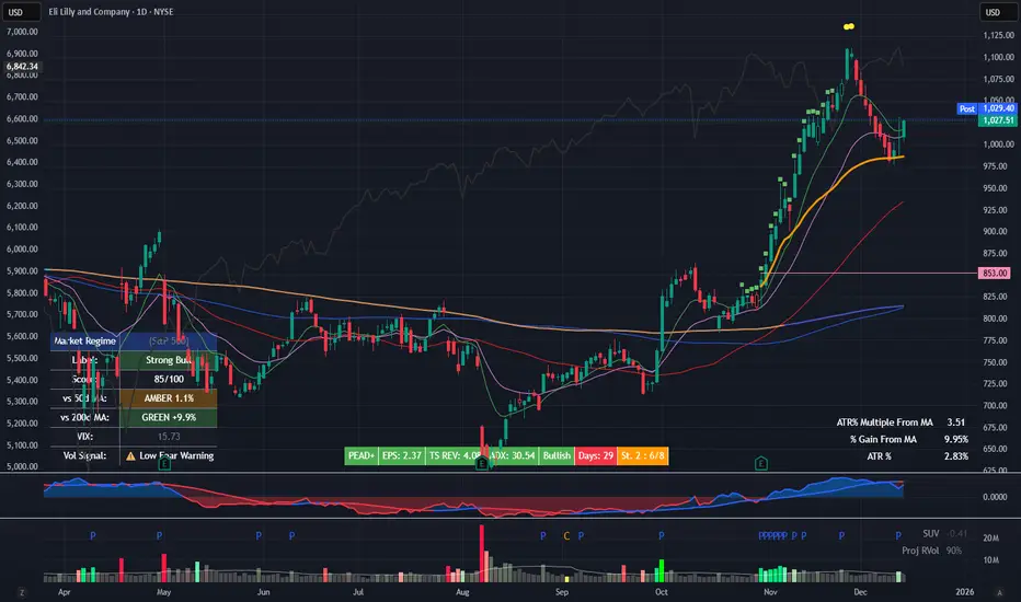 ⚠️ Earnings/news events — SUV will spike dramatically (by design), but the statistical reading may be less meaningful when fundamentals change