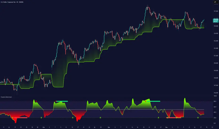 Fractals (Expo) make use of fractals to identify trends and reversals. The indicator is designed to adapt smoothly and quickly to significant price moves in order to identify trend reversals as well as filtering out noise in an established trend. The indicator is simple to use and understand therefore valuable to all trading styles.