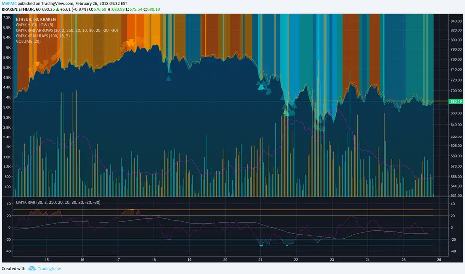 Cropping occurs when VOLUME > 5 * EMA, and is Shown with a transparant bar across the screen.