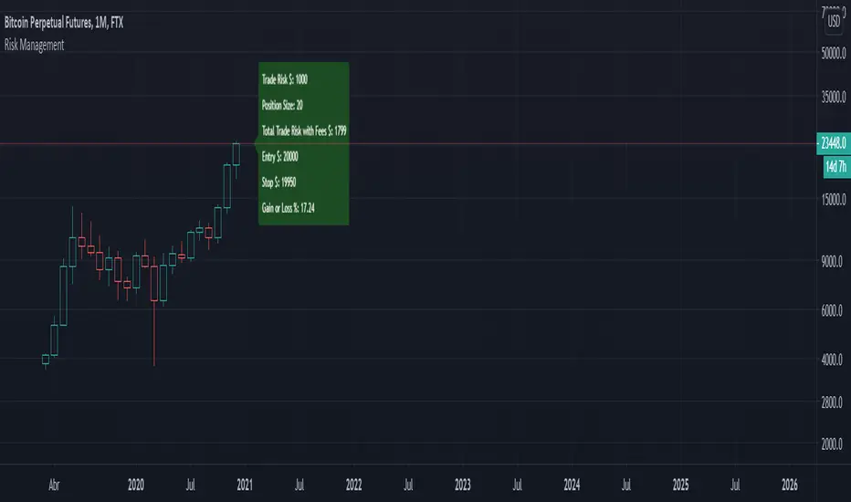 This indicator helps the trader to calculate the size of the buy or sell in relation to the accepted risk. The calculation includes the risk and the fees paid for the purchase, sale or stop.