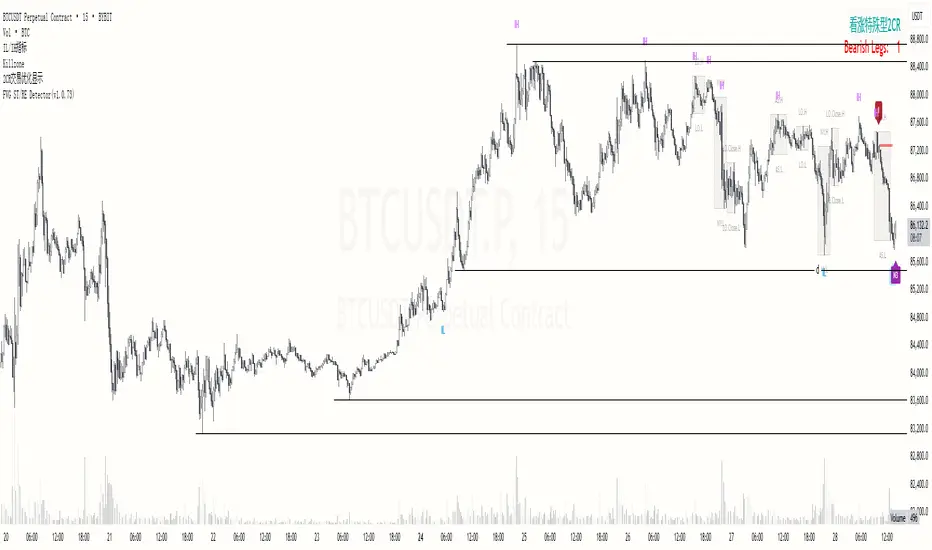 Leg Lines: Horizontal lines representing key structural movements in the market, helping traders visualize the market structure more easily.
