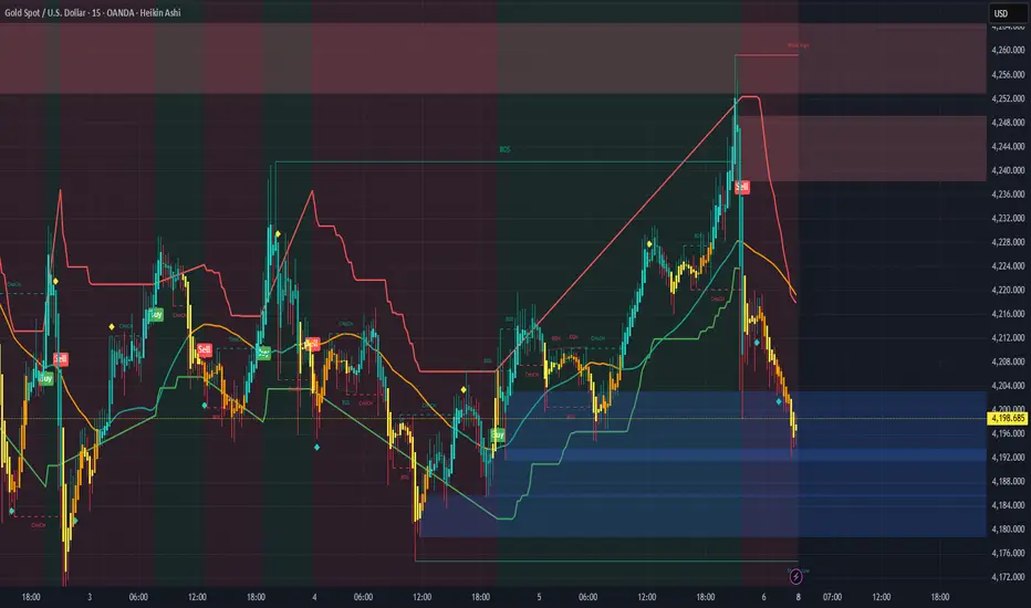 This indicator combines market structure mapping, dynamic trend shifts, valuation zones and multi-layer confirmation into a clean, professional interface suitable for Forex, XAUUSD (Gold), Crypto and major Indices.