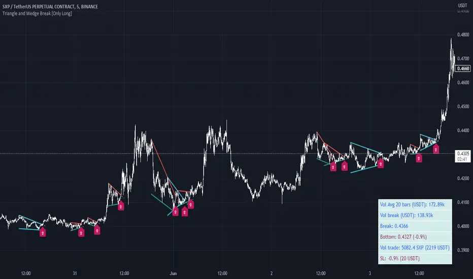 This script is one of an attempt to help traders look for triangles and wedge patterns as soon as a breakout occurs.