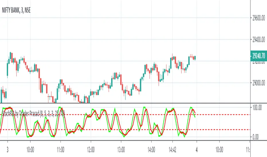 Stoch RSI = ( RSI - Lowest Low RSI ) / (Highest High RSI - Lowest Low RSI )