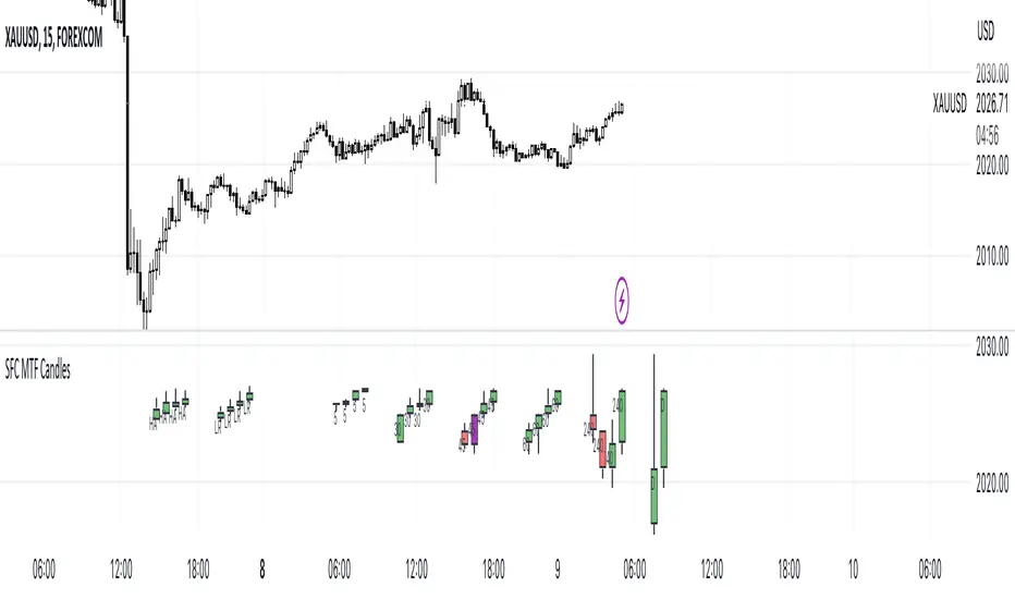 For manipulation traders I have added the ability to see the current manipulation on different time frames. When such a candle is created, its colour changes to purple.