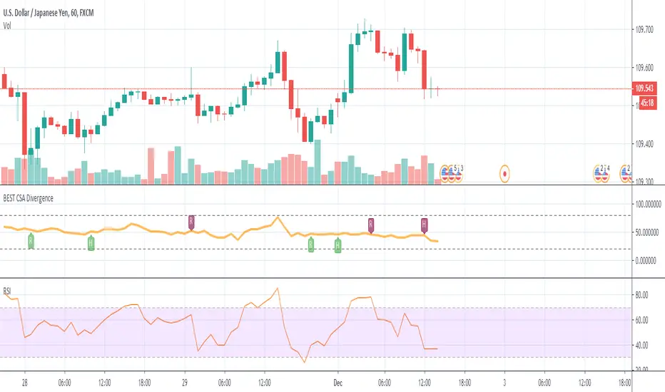 The script evaluates the divergences between the average of the selected RSI(FOREX pairs) and the RSI(FOREX pair) displayed on the chart.