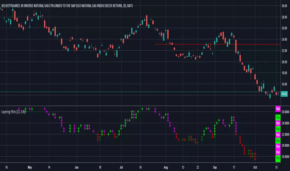 This does not plot sometimes. I'm using a crossover crossunder function, and if a candle gaps open below and ends above a layer, this will not plot. It is not in error, just the way that function works. I will be looking to improve this study, wanted to share what I have for now.