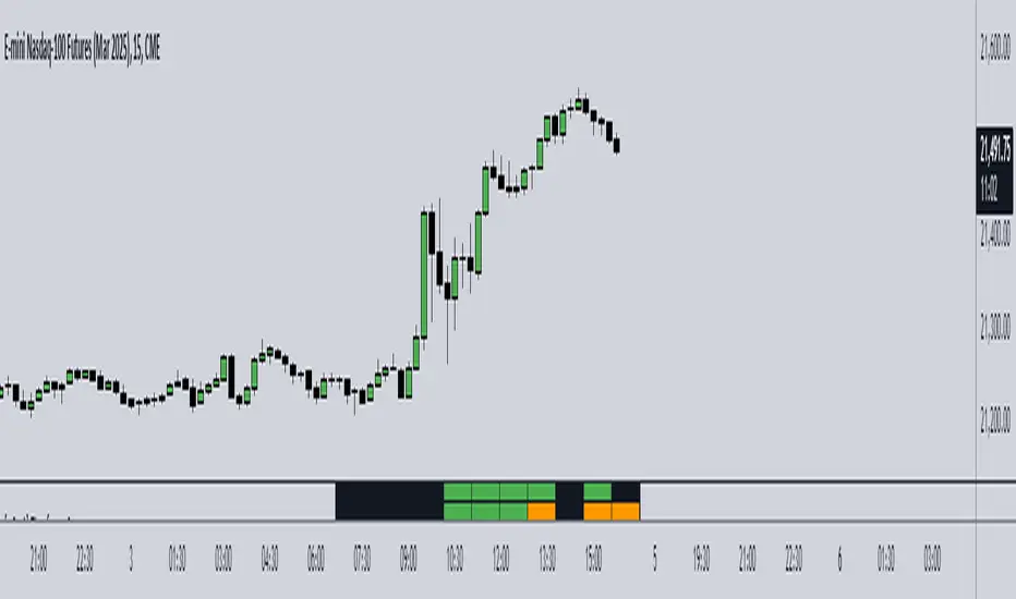-Each subsequent row represents a different timeframe, showing its abbreviation and the bias of the last close. - Conditional Display: Timeframes are only shown if they are relevant to the current chart's timeframe. This ensures that you're not looking at outdated data when on lower timeframes.