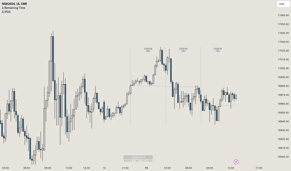 - Hide or show the EQ levels Below the IPDA texts the indicator shows the actual percentage of the selected range based on the current price fluctuations.