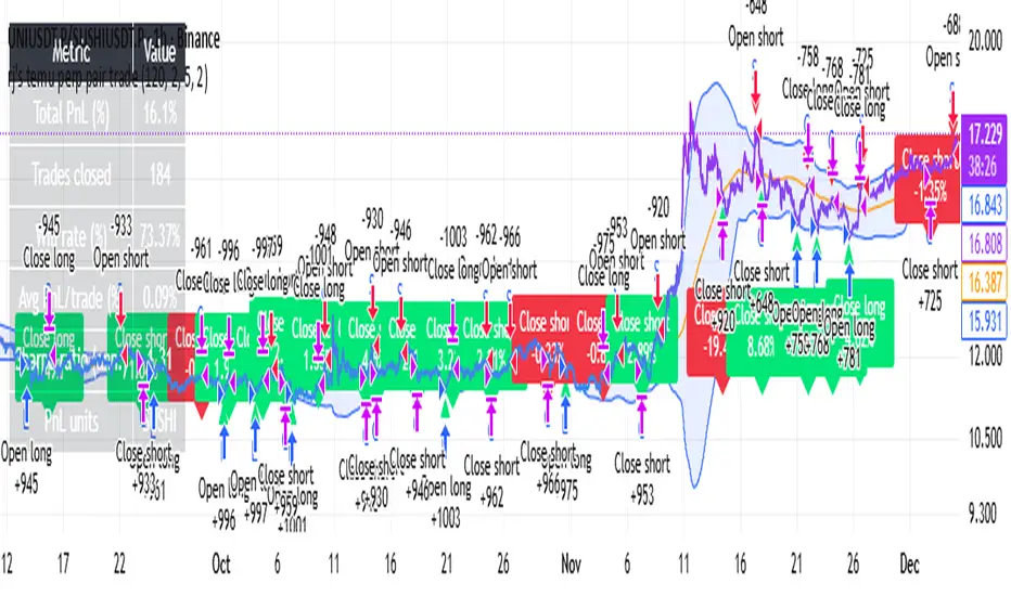 rj’s temu perp pair trade is a simple, robust pairs-trading strategy designed for crypto perpetual futures, implemented directly on ratio charts (A / B) in TradingView.