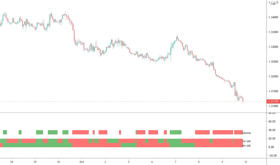 This is a multi-timeframe Parabolic SAR indicator which uses 1 and 4 hour charts.