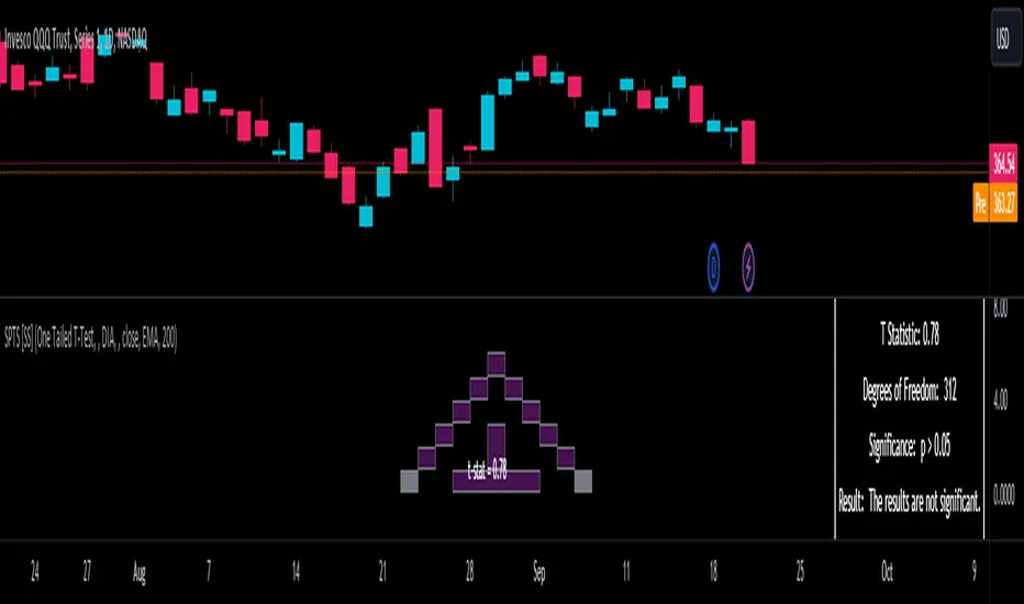 So traditionally, most correlation assessments on Pinescript are done with a generic Pearson Correlation using the "ta.correlation" argument. However, this is not always the best test to be used for correlations and determine effects. One approach to correlation assessments used frequently in economics is the T-Test assessment.