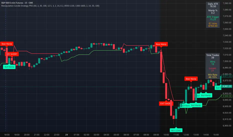 Manipulation Candles: Large 15-minute candles exceeding a percentage of daily ATR; bullish or bearish