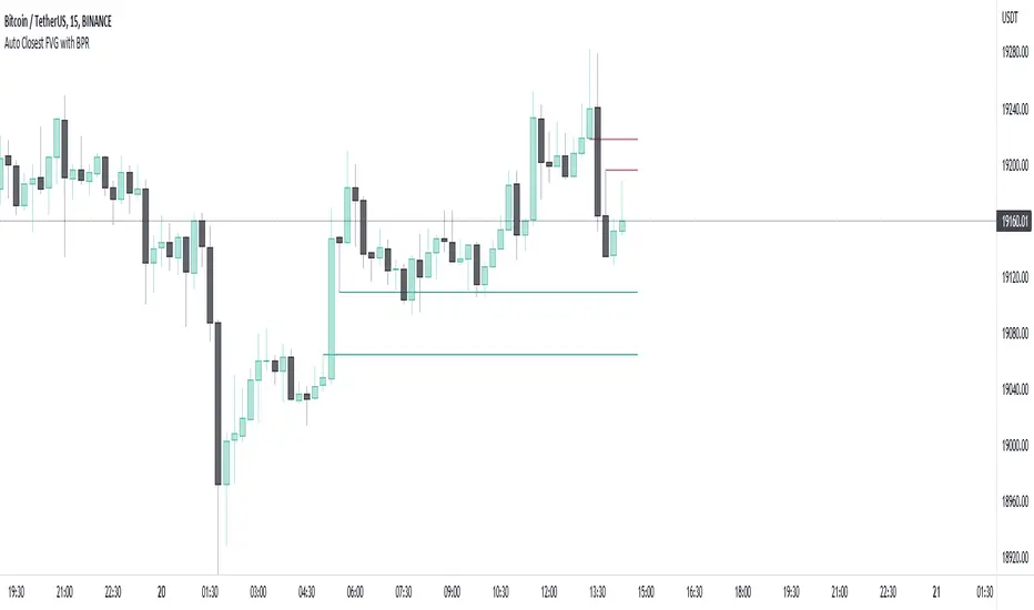 The indicator also has an option to show when the current nearest pair of FVGs form a BPR or 'balanced price range'.