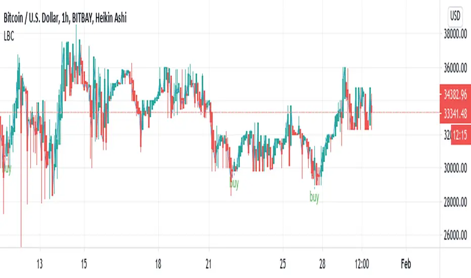 This indicator essentially just finds reversal points on the graph, and labels them buy. Currently working on sell/close trade alerts. Strategy I have used a little bit with some success is entering a trade when it says buy, taking profit at 1% and setting a stop loss at 0.5%. On the 1 hour timeframe I do (still looking into backtesting to see accuracy of other timeframes.