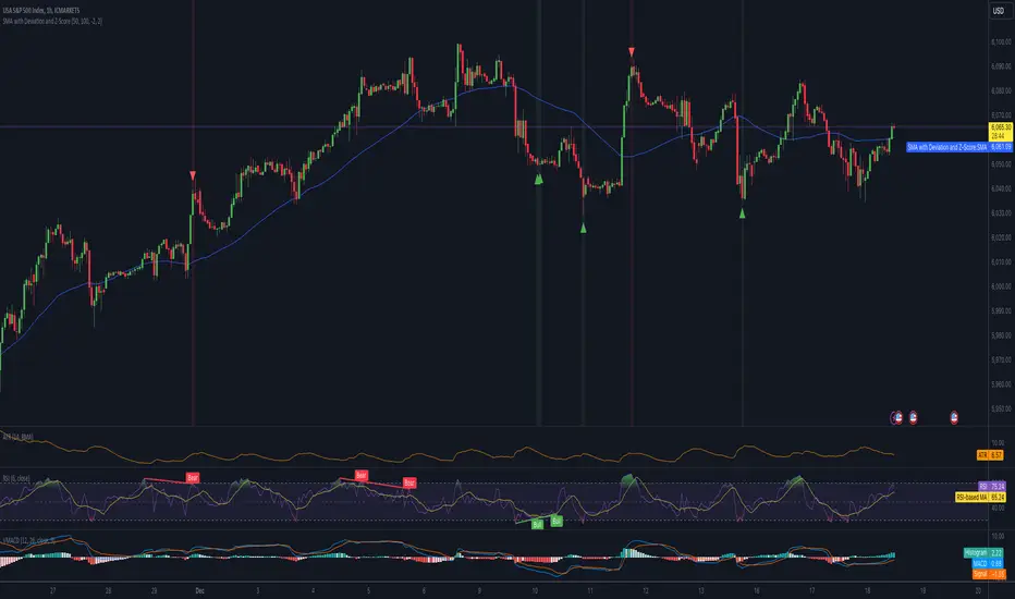 This indicator combines the Simple Moving Average (SMA) with statistical measures of price deviation to identify potential buy and sell signals based on mean reversion principles. It calculates the Z-Score, which quantifies how far the current price is from its moving average in terms of standard deviations, helping traders spot when an asset might be overbought or oversold.
