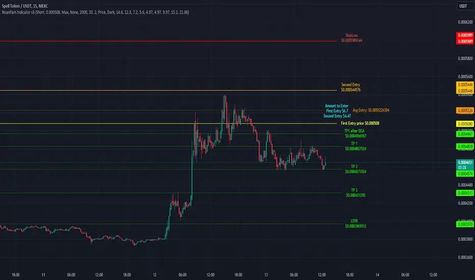 The Noan Indicator is designed to suit various trading strategies and can help confirm a setup after thorough research or upon reaching a Point of Interest (POI). By inputting a pre-examined entry price, the indicator will display different potential levels for Take Profits (TPs), Dollar-Cost Averaging (DCA), and Stop Loss (SL) areas. These levels are based on fixed percentages derived from data collected from thousands of trades.