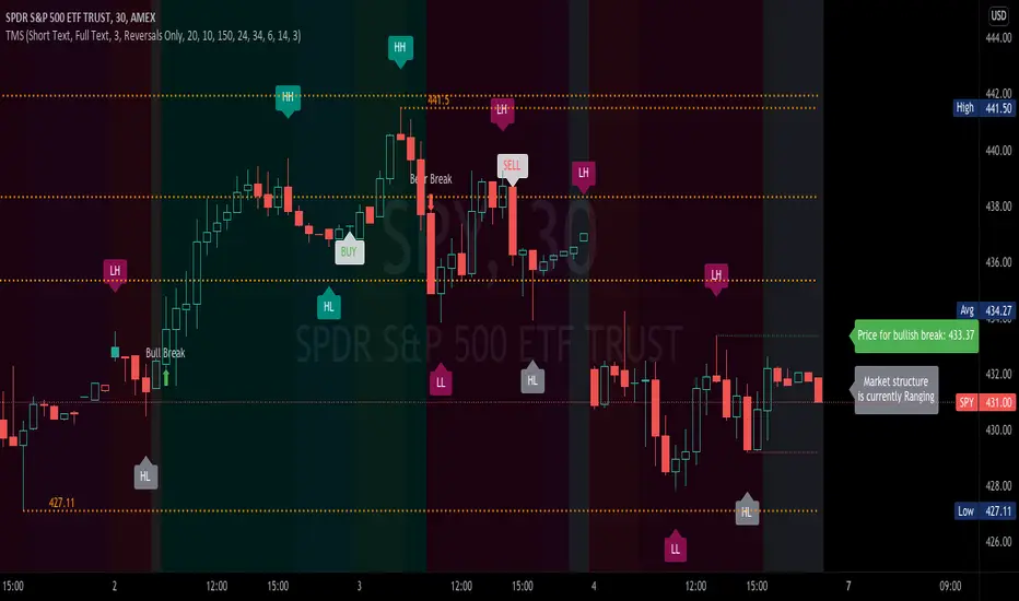 This indicator shows market structure. The standard method of using Williams Highs and Lows as pivots, is something of an approximation.